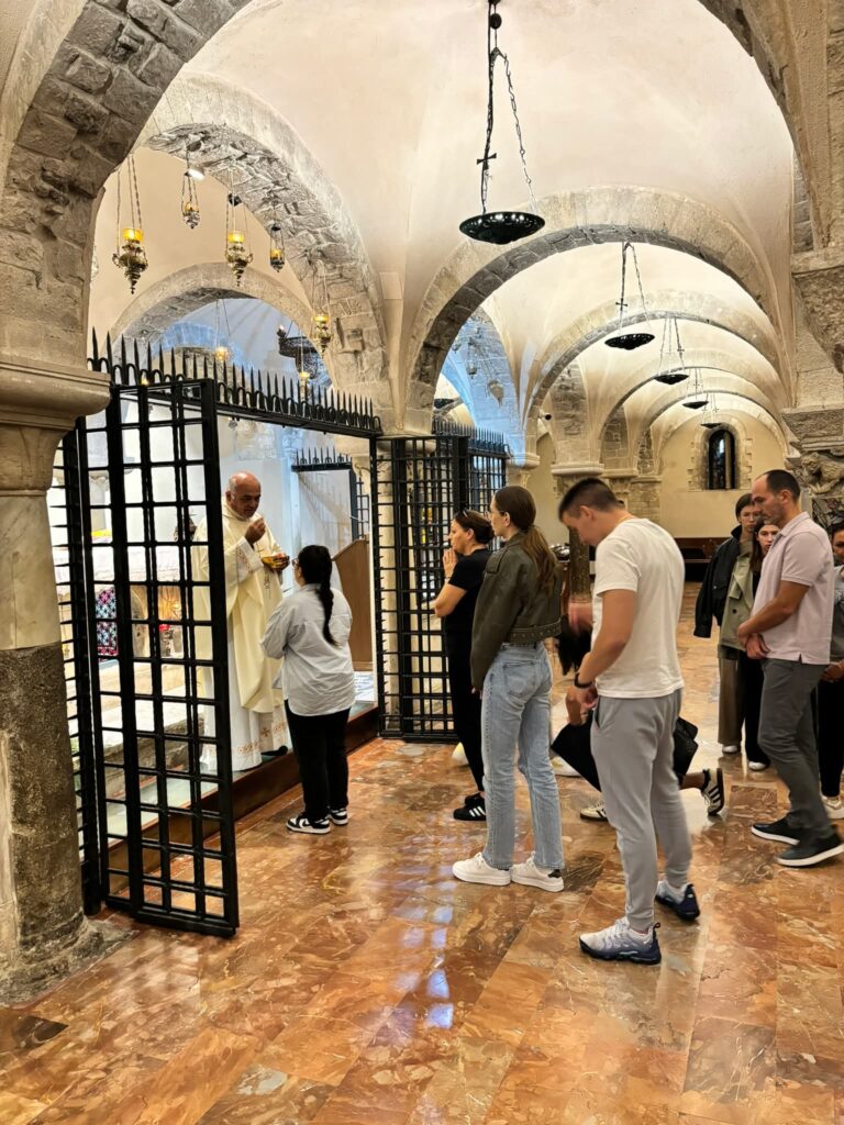 Tik pred osvit zore grupa hodočasnika sa Sućidra zaputila se prema prvome odredištu, gradu sv. Vlahe, gradu Dubrovniku gdje ih je čekao trajekt za talijanski grad Bari. Dugotrajni, a za neke iscrpljujući dvanaestosatni put, ovoj je grupi bio veoma zanimljiv i prilika za postavljanje temelja zajedništvu koje će se tijekom hodočašća razvijati, a čije će prve natruhe biti vidljive već na prvoj zajedničkoj večeri u gradu Avellinu, večeri kojom je ujedno i zaokružen prvi dan hodočašća. Nakon jutarnje mise u crkvi Santa Maria del Roseto, u kojoj će se i iduća dva jutra slaviti sveta misa, uslijedio je posjet svetištu Montevergine smještenom u šumskoj osami iznad Avellina. Put je nastavljen prema površinom malenome, ali značajem velikome gradu Pietrecelinu, rodnome mjestu Padre Pija, u kojemu je i dan danas očuvana njegova rodna kućica. Za kraj dana uslijedio je razgled Pompeja, grada u kojemu je vrijeme stalo i koji posjetiteljima omogućava povratak u antičko doba. Sutradan prva je postaja bio grad Salerno sa svojom prekrasnom katedralom svetoga Mateja, čuvaricom relikvija jednoga od najvećih papa u povijesti, Grgura VII., i istoimenom kriptom oslikanom prikazima iz Matejeva evanđelja, zdanje za koje i više nego dobro vrijedi ona stara da slika govori tisuću riječi. Sljedeća je stanica bio grad Napulj ili, kako bi rekli Napolitanci, jedini pravi talijanski grad. Nakon panoramske vožnje i lagane šetnje napuljskim ulicama, kraj je dana bio rezerviran za posjet katedrali posvećenoj Uznesenju Marijinu. Sljedeći je dan započeo posjetom Materi, gradu koji datira još iz vremena paleolitika, a koji će mnogi prepoznati zahvaljujući mnogobrojnim filmovima, između ostaloga Ben Hur i Pasija. Nakon razgleda Matere, put je nastavljen do Bitetta, grada u kojemu se nalazi tijelo blaženog Jakova Zadranina. Nažalost, zbog procesa kanonizacije, tijelo nije bilo ondje, ali to nije ni u čemu pokolebalo ovu grupu hodočasnika koji su nastavili prema gradu u kojemu je Padre Pio proveo svoje posljednje dane, gradu u kojemu je izgrađen vjerski kompleks u kojemu se čuva tijelo ovoga svetca, San Giovanni Rotondo. Dan se završio svetom misom koju su mnogi, vjerujem, po prvi put slušali na talijanskome jeziku. Izmoreni tjelesno, ali duhovno okrijepljeni, hodočasnici su se uputili prema hotelu u Bariju. Posljednji je dan bio rezerviran za razgled grada Barija i slavljenje svete mise u kripti svetog Nikole u kojoj se čuvaju relikvije ovoga, posebno među dječicom, omiljenog svetca, a koja se nalazi u istoimenoj katedrali. Hodočašće se polako počelo približavati svome kraju te je uslijedio ukrcaj na trajekt za Dubrovnik te noćna vožnja prema Splitu.