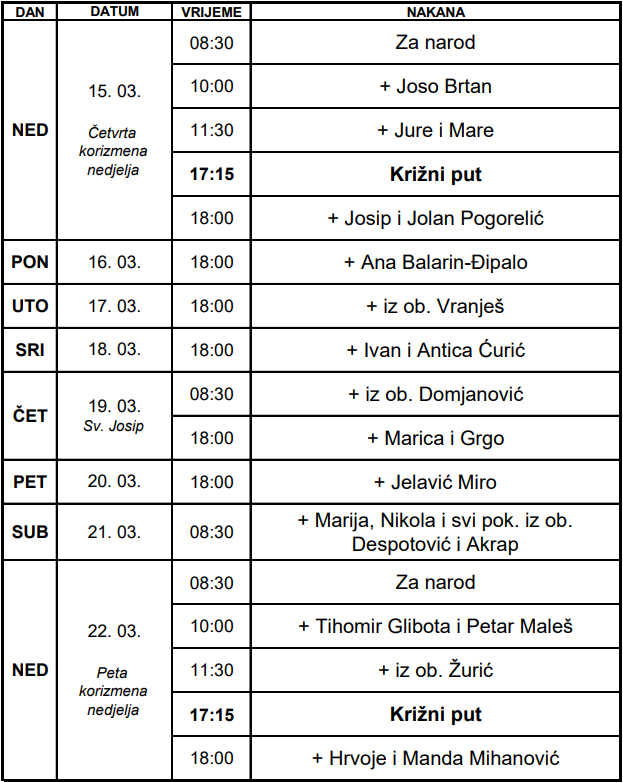 Sastanak roditelja i kumova ovogodišnjih krizmanika održat će se u nedjelju, 15. ožujka, iza večernje svete mise (19:00). Molimo SVE roditelje i kumove da budu prisutni na sastanku.
