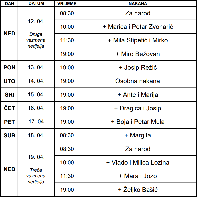 Za vrijeme Biblijskog bdjenja odgađaju se SVE župne aktivnosti i pobožnosti, osim svetih misa. Crkva će cijelo vrijeme biti otvorena te će biti izložen Presveti oltarski sakrament.